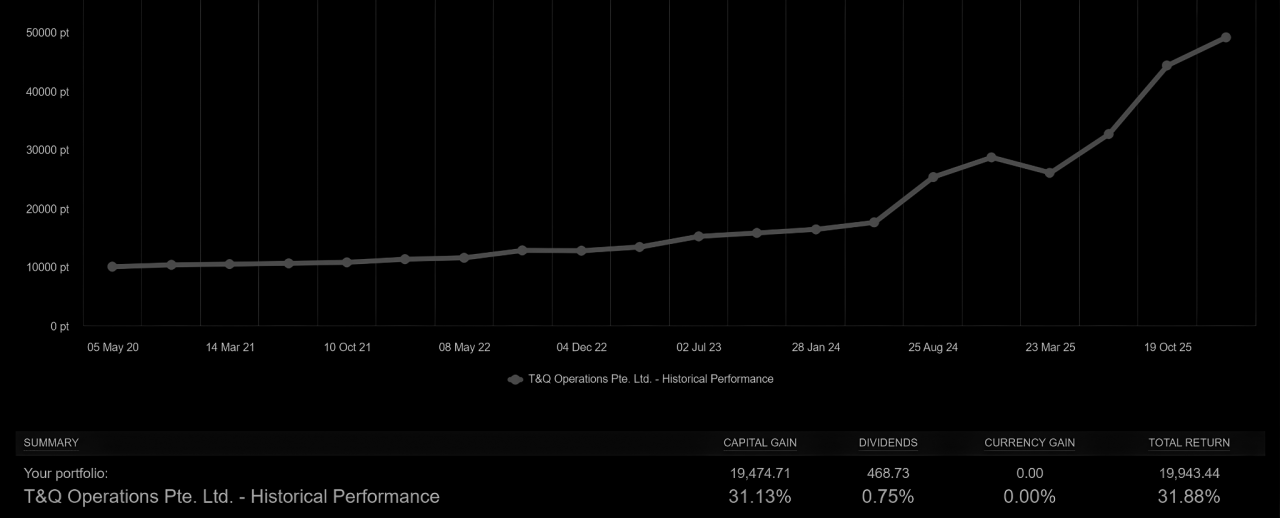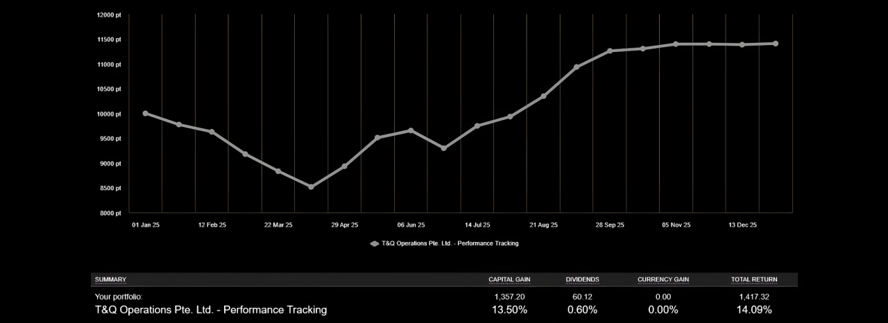 Historical Performance The value of 10,000 USD investment since initial operation in 2020 % shows the compounded growth rate every year (without financial leverage) Last Update – 01 February 2026 Current Year Performance The value of investment if invest 10,000 USD at the beginning of the current year. % shows the total growth rate in the current year (without financial leverage) Last Update – 01 February 2026 2024 Performance Record The value of investment if invest 10,000 USD at the beginning of the fiscal year. % shows the total growth rate in the fiscal year (without financial leverage) Last Update – 31 December 2025 2024 Performance Record The value of investment if invest 10,000 USD at the beginning of the fiscal year. % shows the total growth rate in the fiscal year (without financial leverage) Last Update – 31 December 2024 Ready To Work With Us? As a private service, we do not open to the public. For further inquiries, please contact your source of referral.